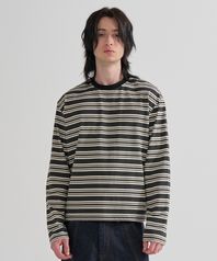 콘트라스트 멀티 스트라이프 롱 슬리브 [MELANGE GREY]