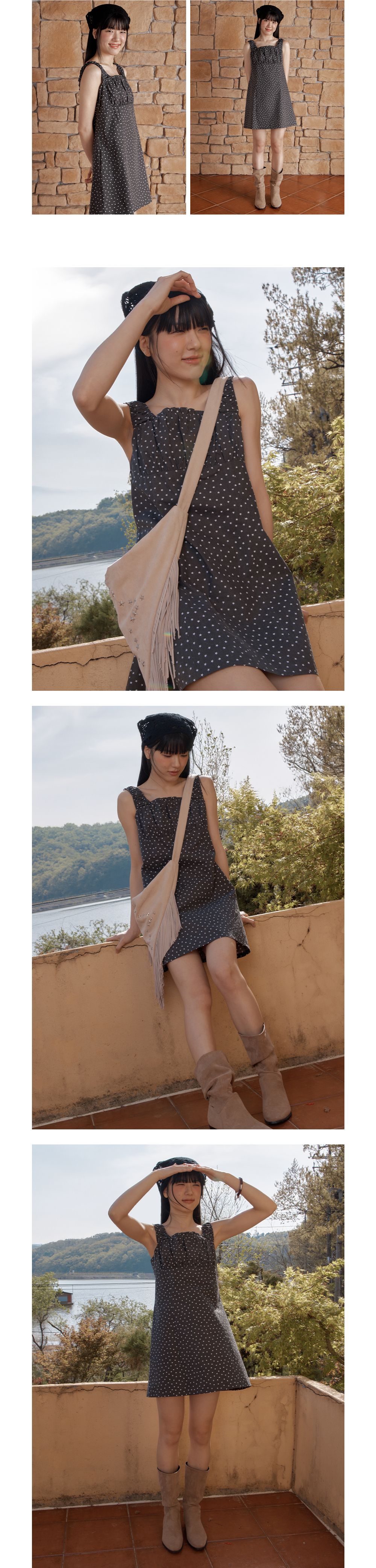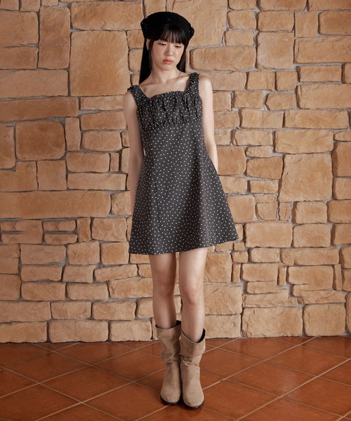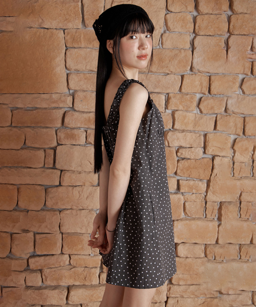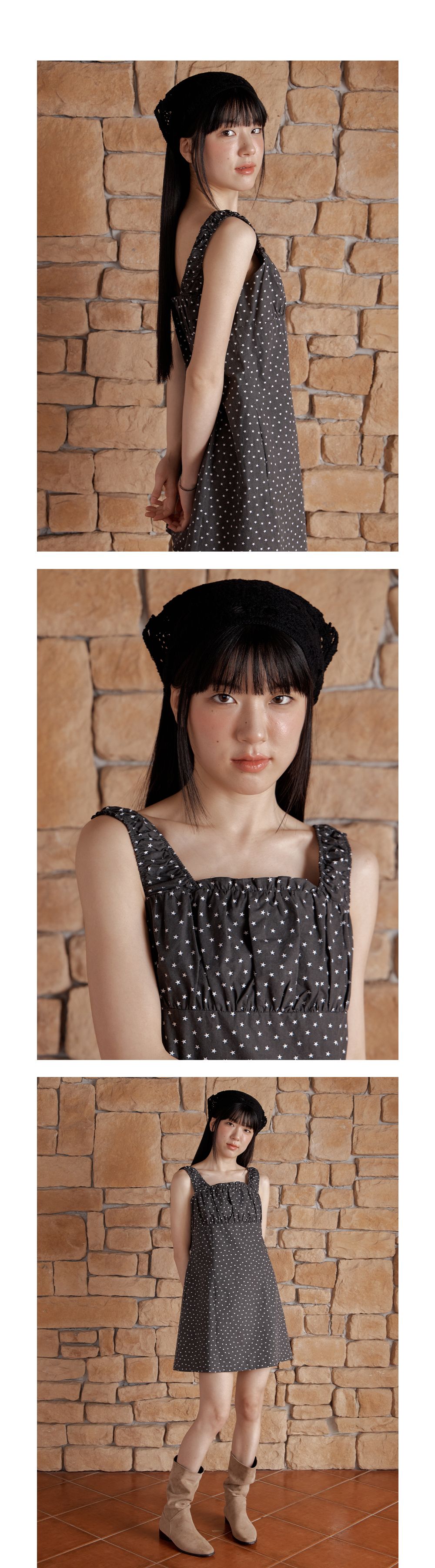 STAR SHIRRING SLEEVELESS MINI DRESS_BLACK