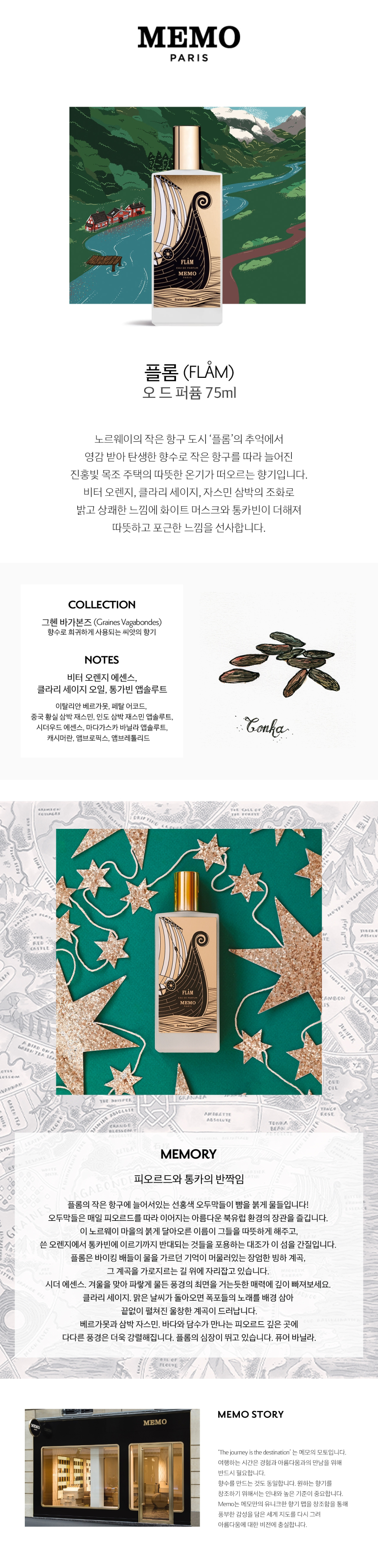 메모파리(MEMO PARIS)는 ‘기억(Memory)’에서 비롯되어 '향기로 이동 없이 여행을 떠날 수 있다'는 철학으로 탄생한 프렌치 프래그런스 하우스입니다. 후각적 기억이 깃든 메모파리만의 섬세하면서도 우아한 향기로 꿈꿔왔던 행선지로 당신만의 여행을 떠나보세요.