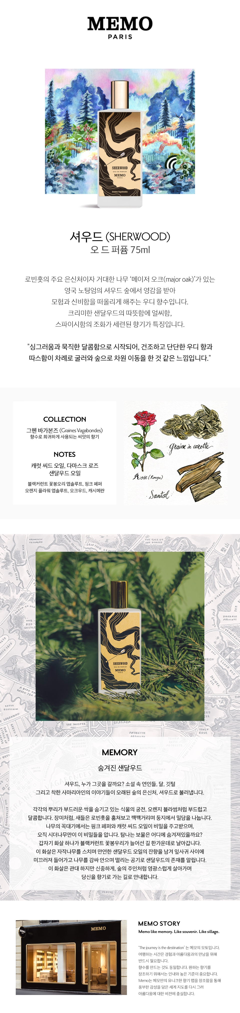 메모파리(MEMO PARIS)는 ‘기억(Memory)’에서 비롯되어 '향기로 이동 없이 여행을 떠날 수 있다'는 철학으로 탄생한 프렌치 프래그런스 하우스입니다. 후각적 기억이 깃든 메모파리만의 섬세하면서도 우아한 향기로 꿈꿔왔던 행선지로 당신만의 여행을 떠나보세요.