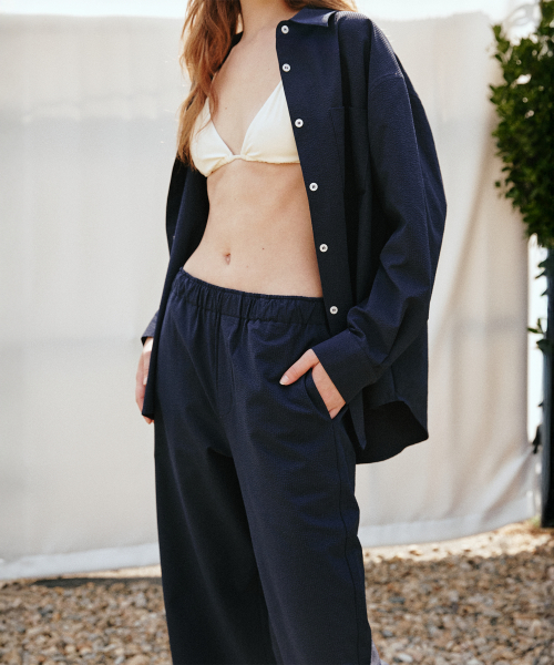 시어서커 와이드 밴딩 팬츠 [네이비]