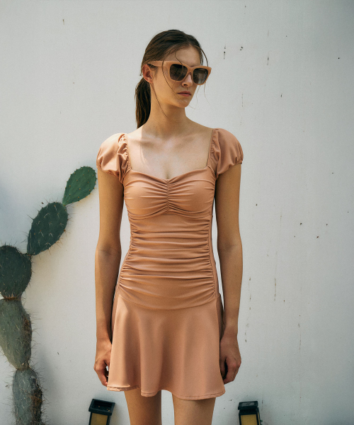 Cap sleeve shirring Swimsuit[LMBESW242]-3color