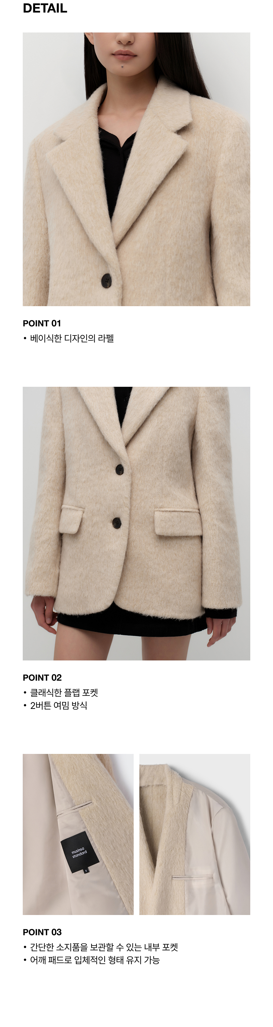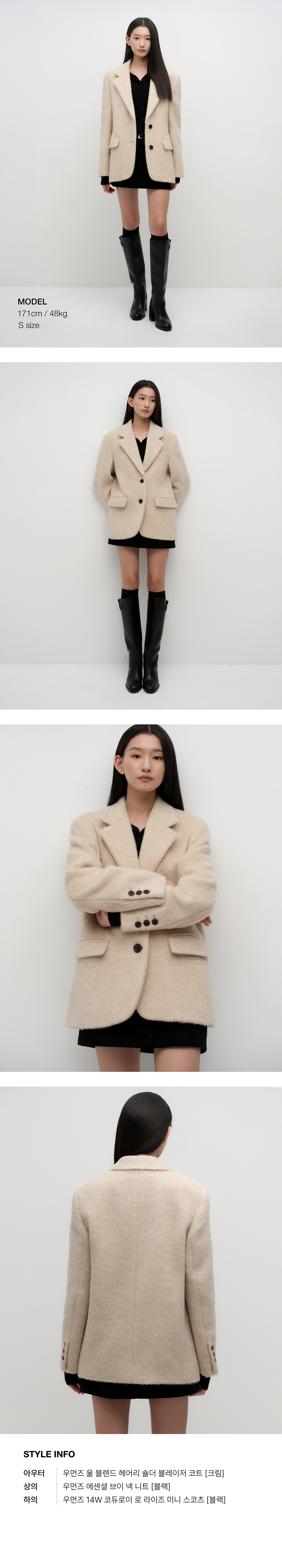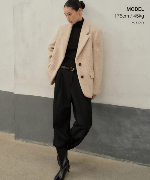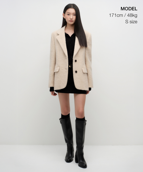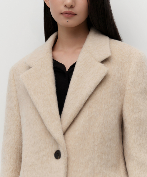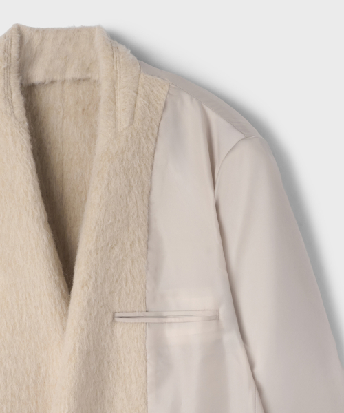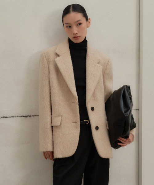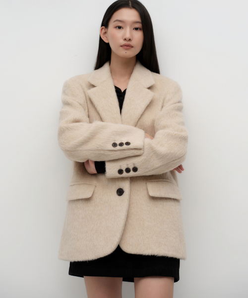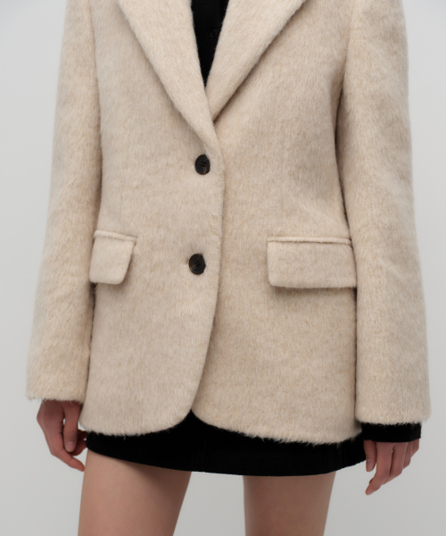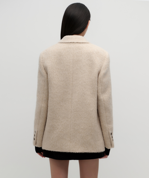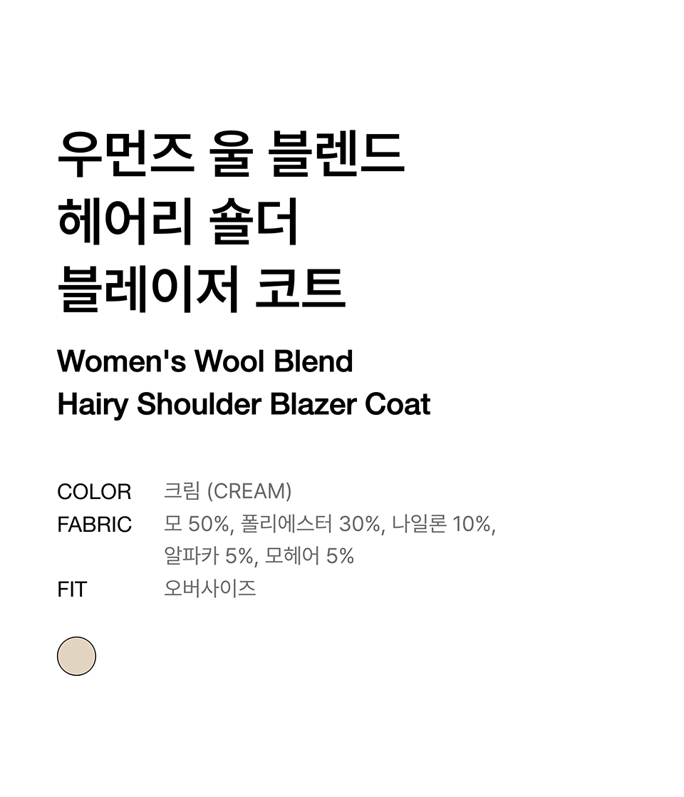 우먼즈 울 블렌드 헤어리 오버 숄더 블레이저 코트 [크림]