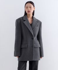 우먼즈 울 블렌드 볼륨 멜톤 오버 숄더 블레이저 코트 [미디엄 그레이]