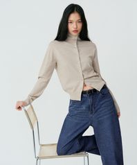 우먼즈 에센셜 하이 넥 가디건 [라이트 베이지]