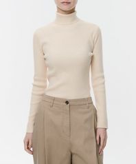 우먼즈 리브드 슬림 터틀 넥 니트 [에크루]