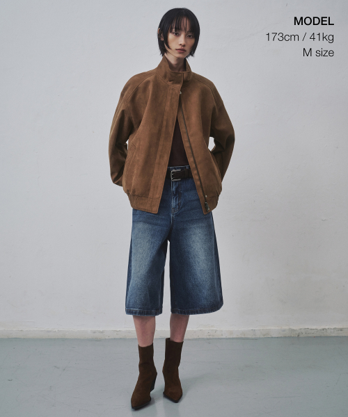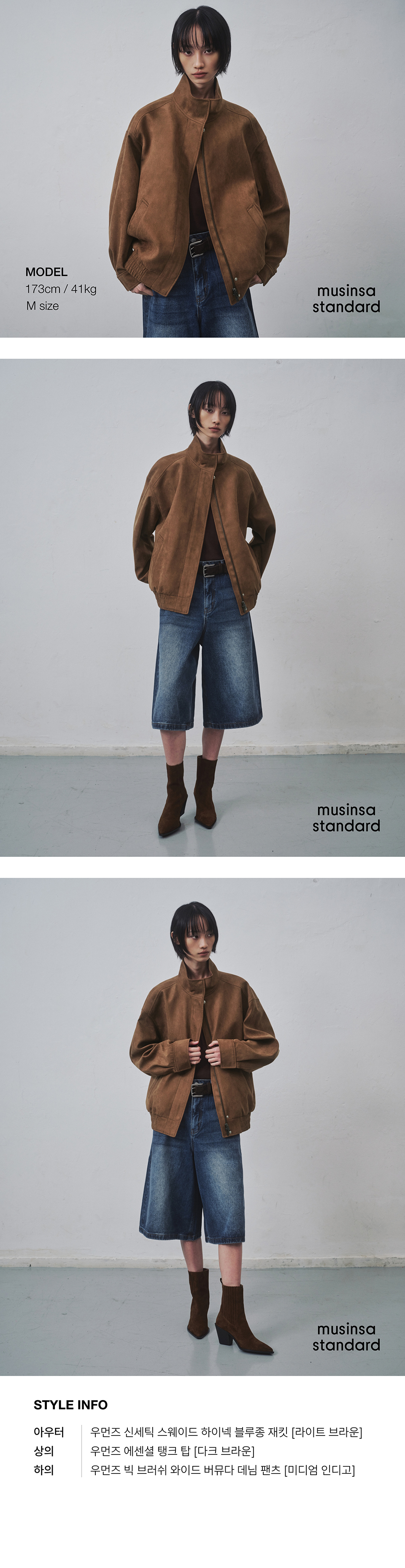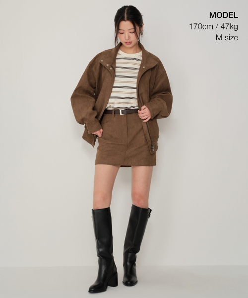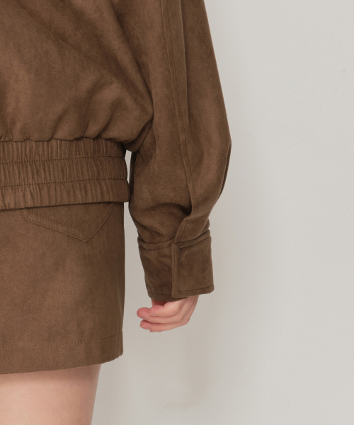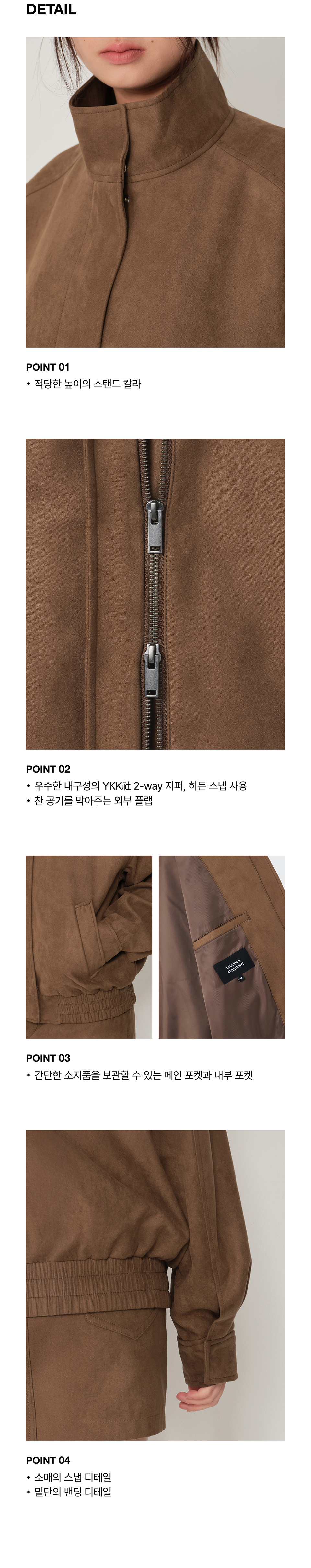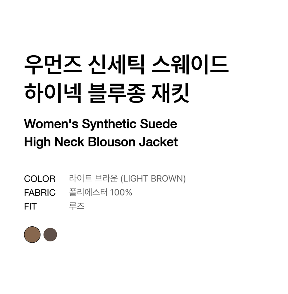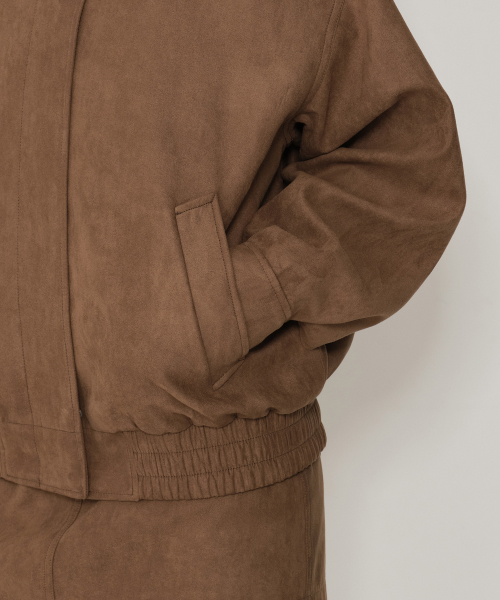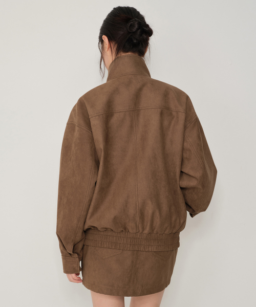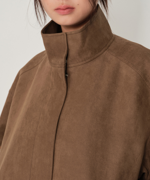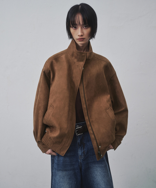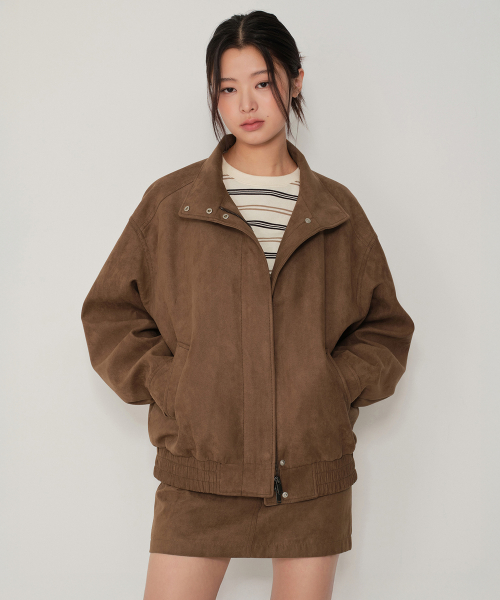 우먼즈 신세틱 스웨이드 하이넥 블루종 재킷 [라이트 브라운]