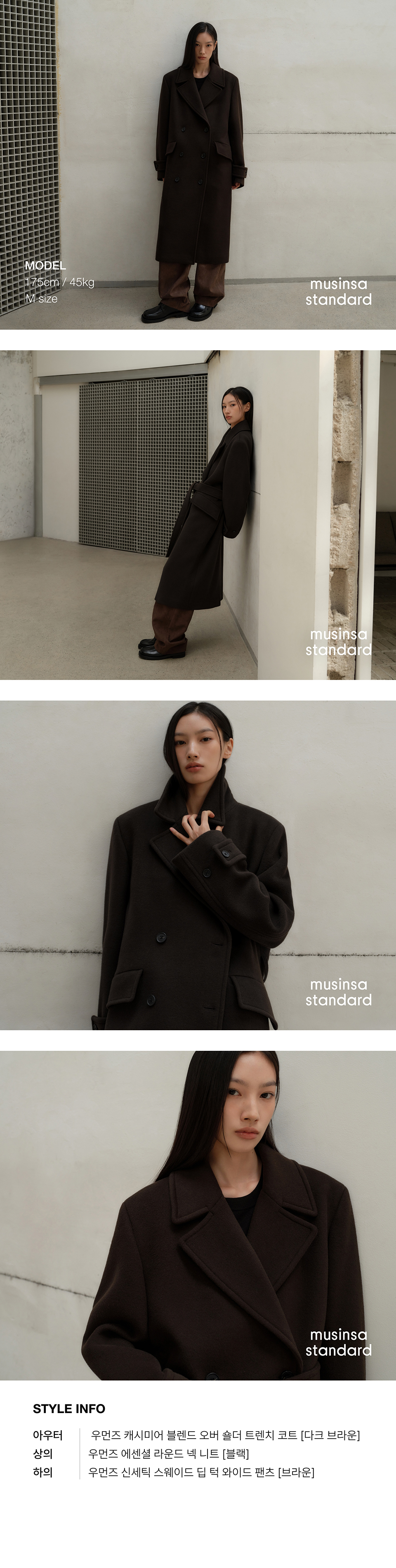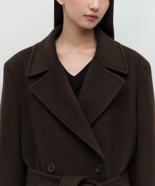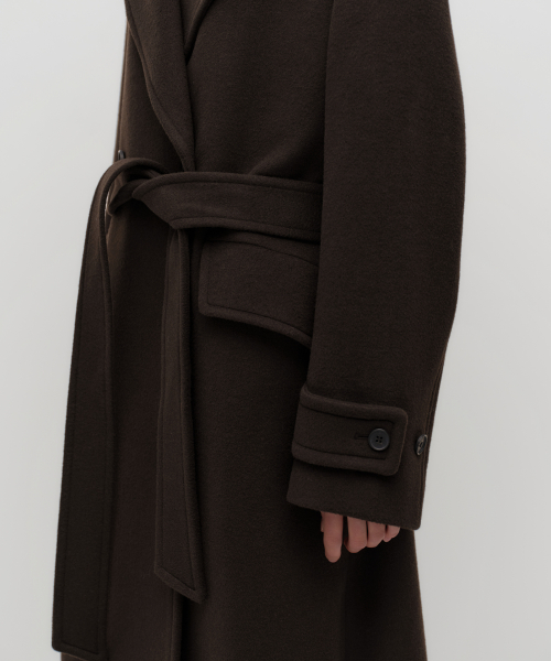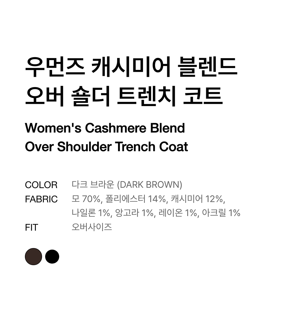 우먼즈 캐시미어 블렌드 오버 숄더 트렌치 코트 [다크 브라운]