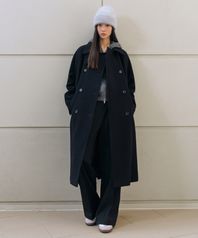 우먼즈 캐시미어 블렌드 오버 숄더 트렌치 코트 [블랙]