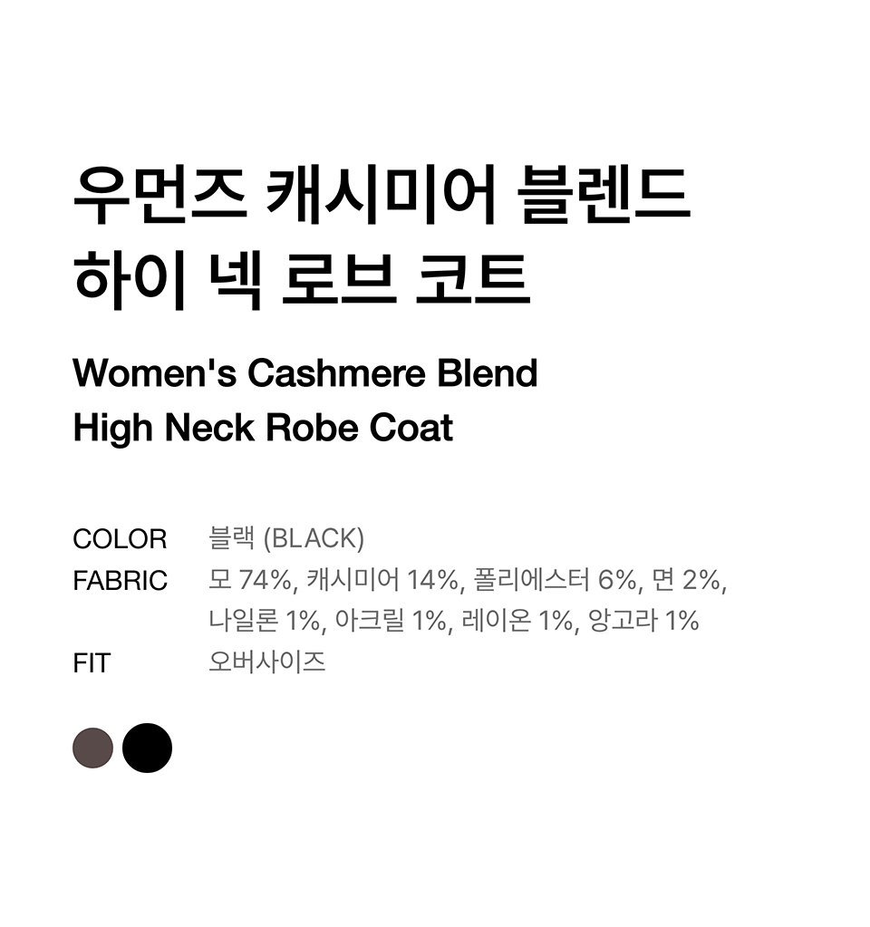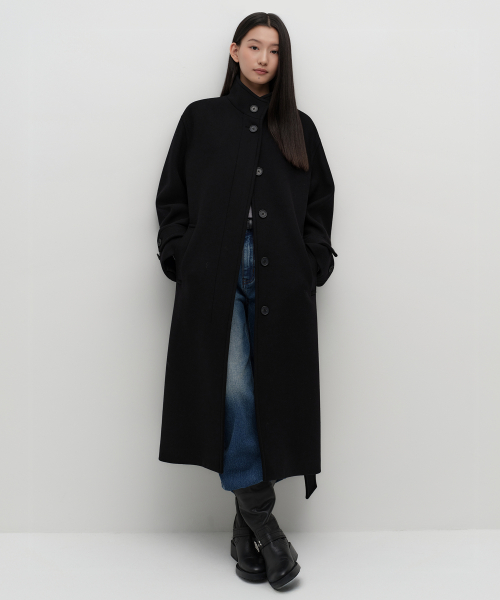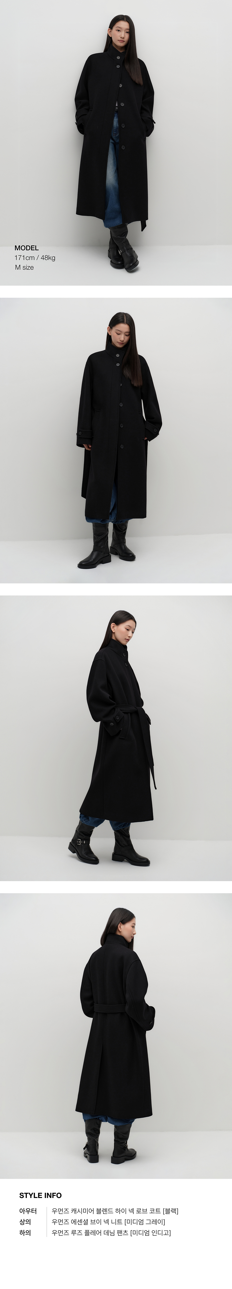 우먼즈 캐시미어 블렌드 하이 넥 로브 코트 [블랙]