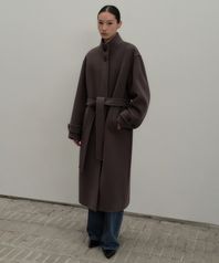 우먼즈 캐시미어 블렌드 하이 넥 로브 코트 [초코 브라운]