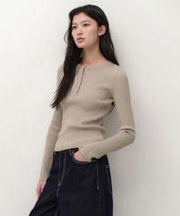 우먼즈 리브드 슬림 헨리 넥 니트 [라이트 베이지]