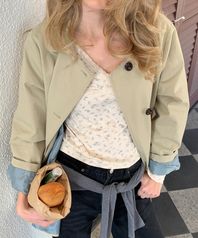 우먼즈 싱글 하프 트렌치 코트 [크림]