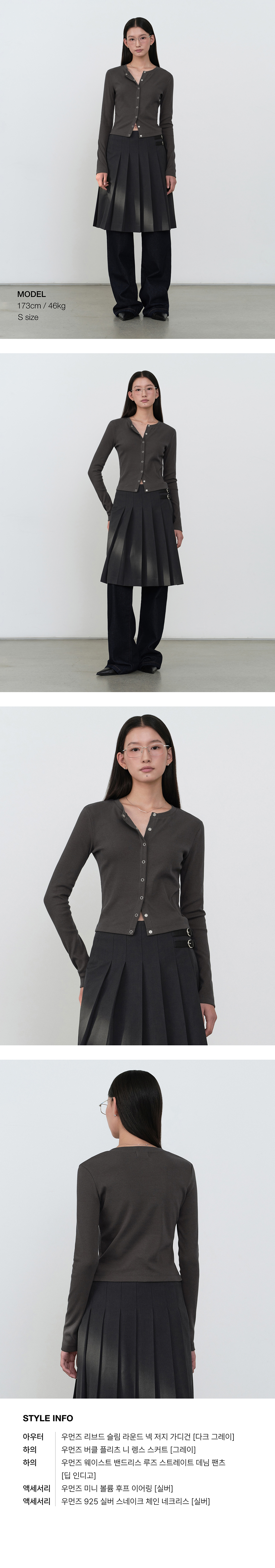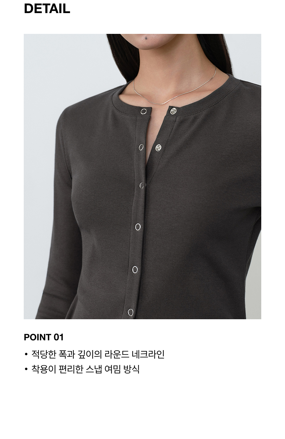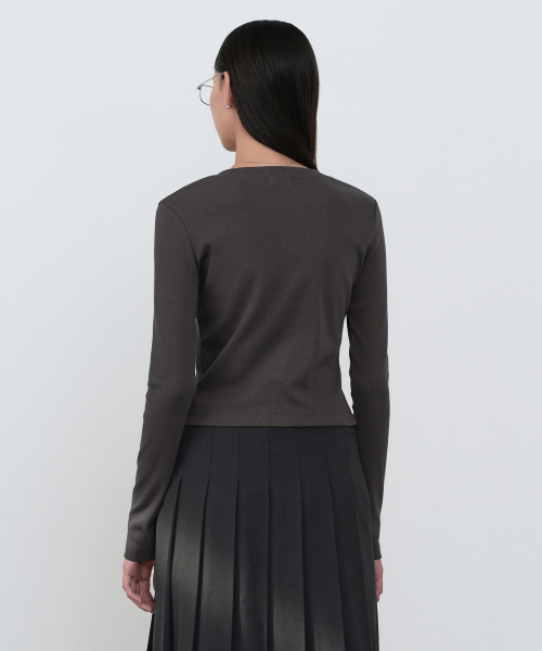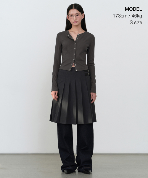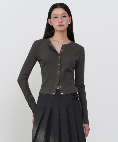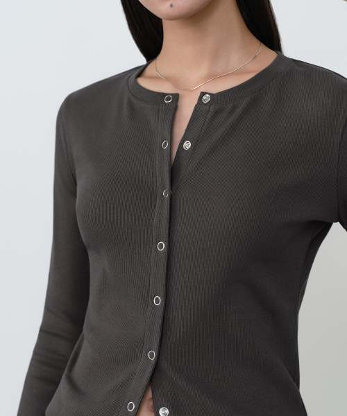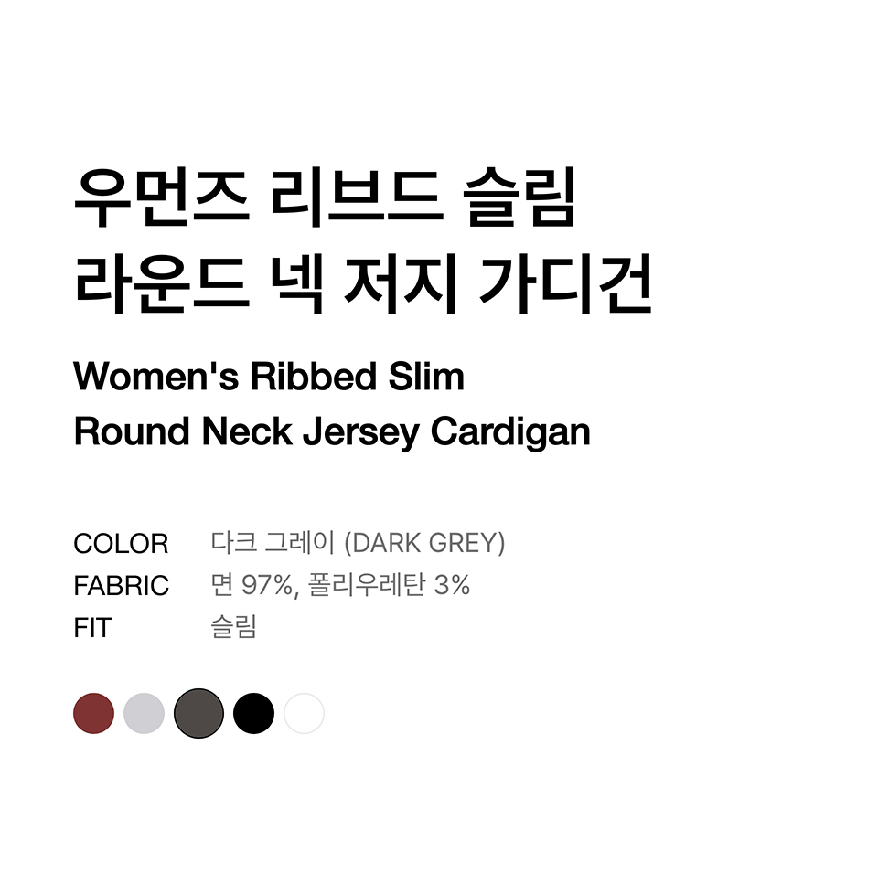 우먼즈 리브드 슬림 라운드 넥 저지 가디건 [다크 그레이]