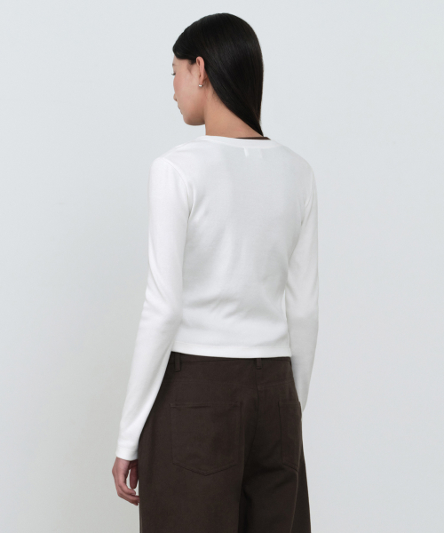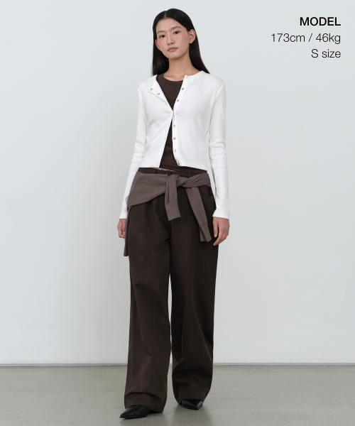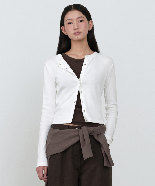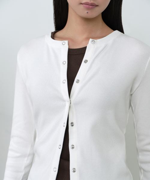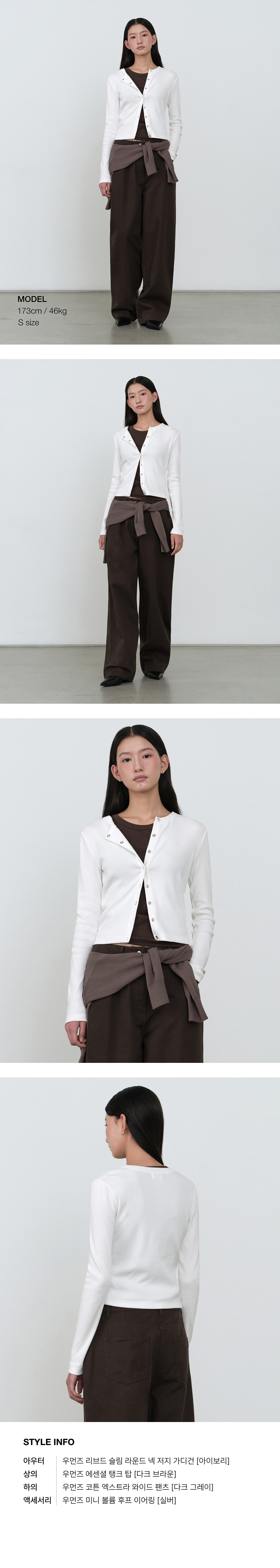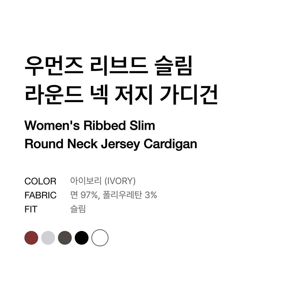 우먼즈 리브드 슬림 라운드 넥 저지 가디건 [아이보리]