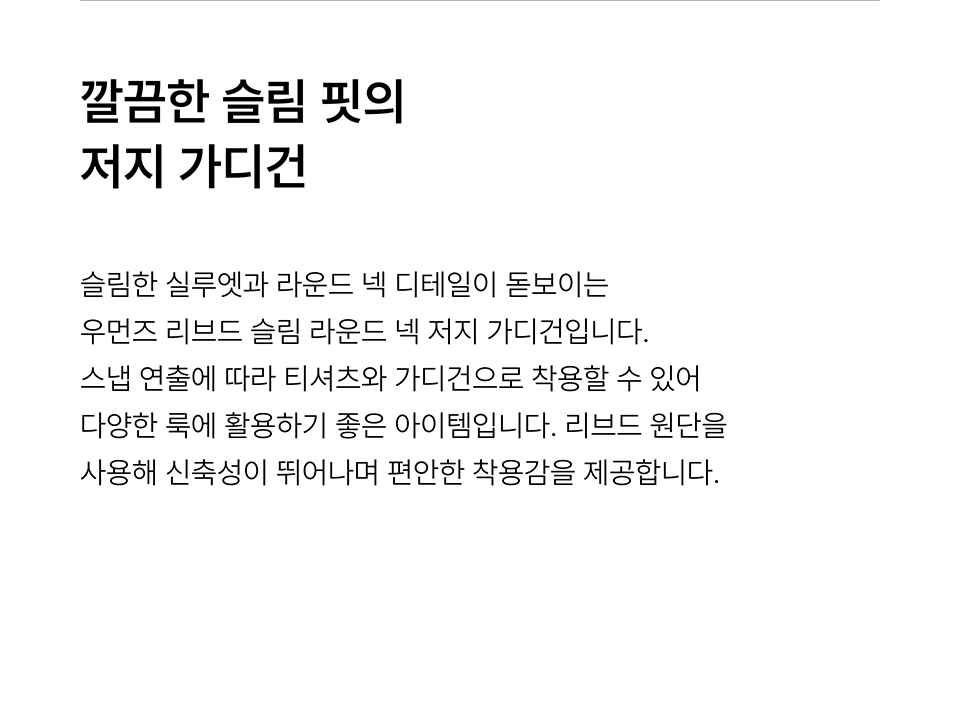 우먼즈 리브드 슬림 라운드 넥 저지 가디건 [블랙]