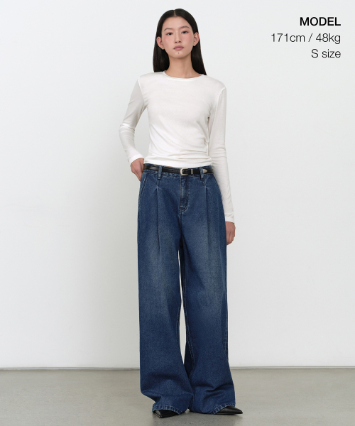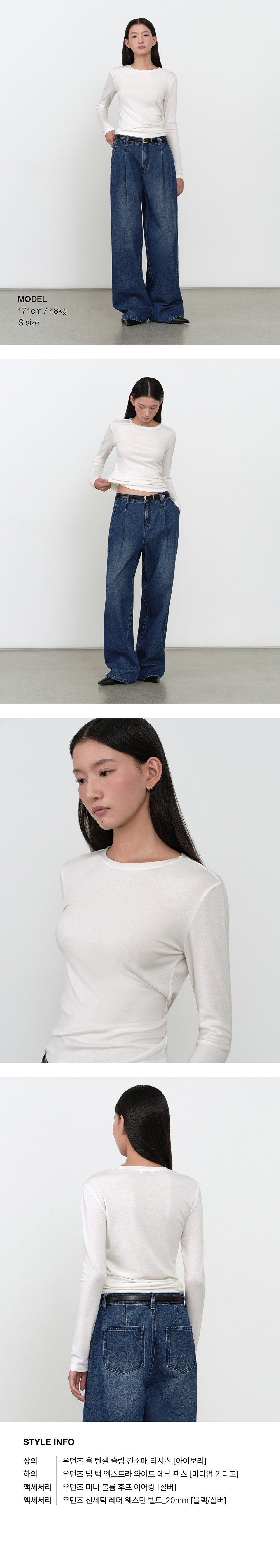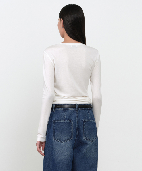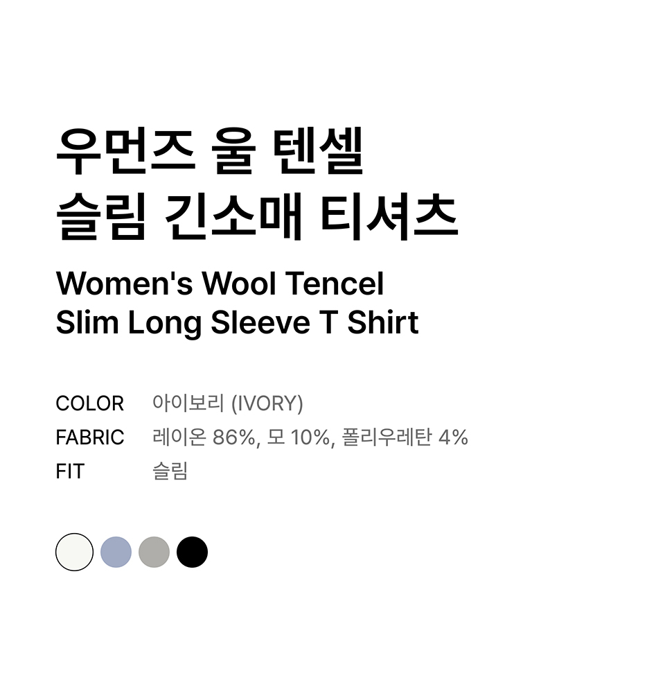 우먼즈 울 텐셀 슬림 긴소매 티셔츠 [아이보리]