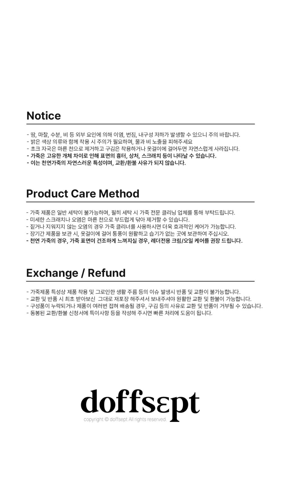 도프셉(DOFFSEPT)은 언제 어디서나 가볍게 착용하기 좋은 레더 아이템을 지향하는 여성 레더 브랜드입니다. 트렌디하면서도 레더 특유의 시크함을 바탕으로 베이식하고 고급스러우면서도 높은 접근성을 제안합니다.