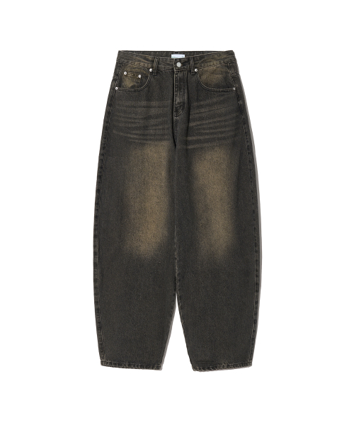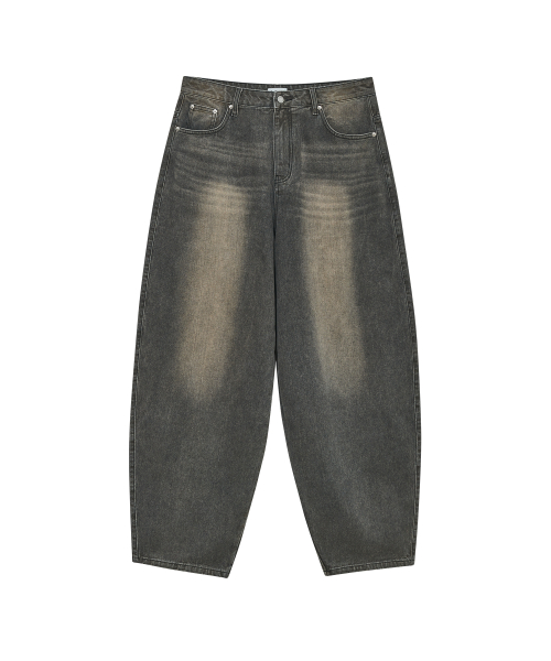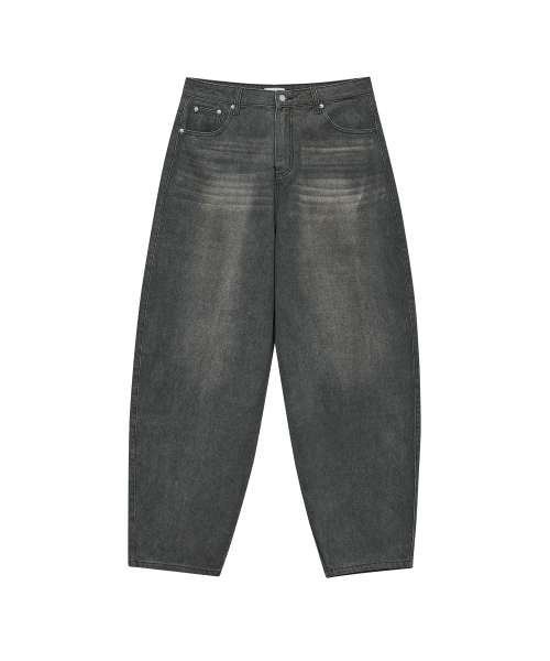 87-STAN047 벌룬핏 워싱 와이드 데님팬츠 빈티지 블랙