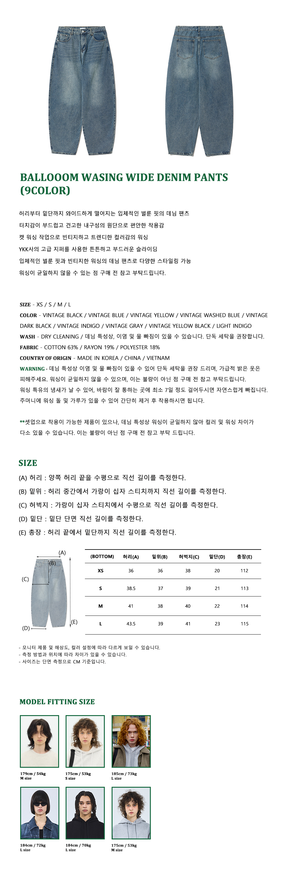 빈티지 프론트 워싱 와이드 벌룬 데님 팬츠 4Color