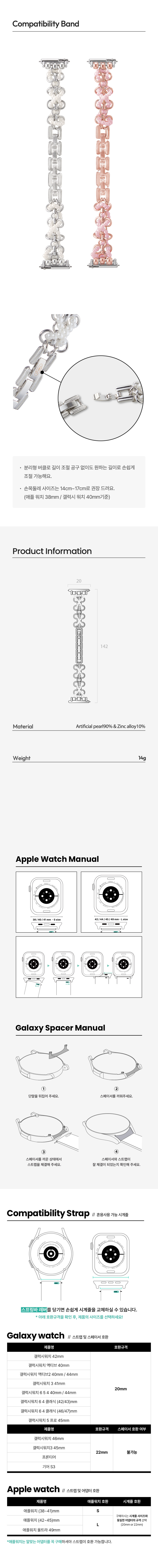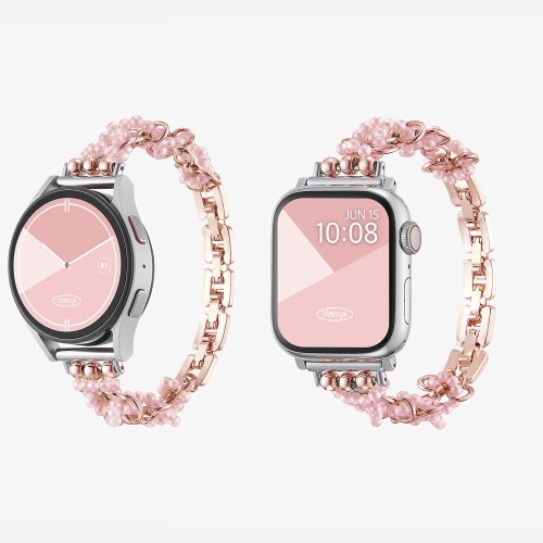 우먼즈 진주 브레이슬릿 애플워치 스트랩 2 울트라 2 SE2 갤럭시워치 6 호환 밴드 - 블러쉬 핑크