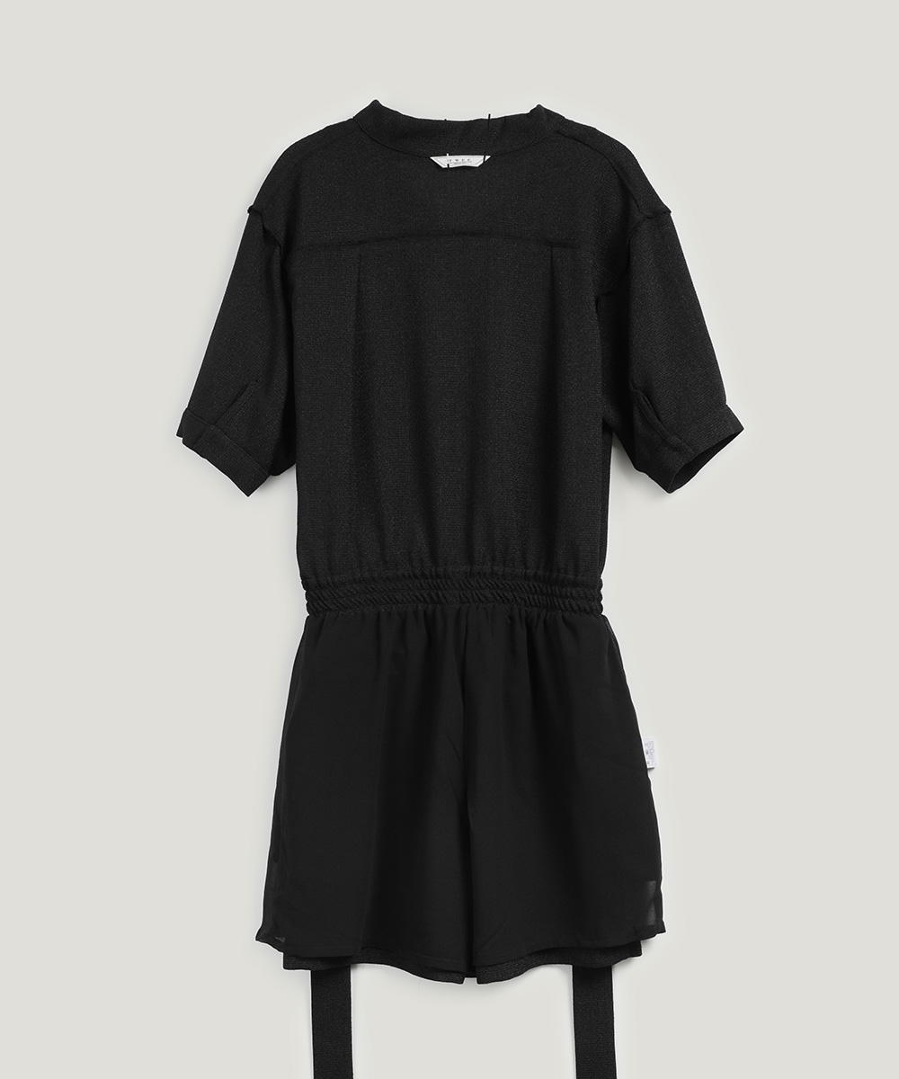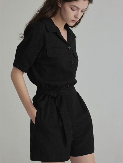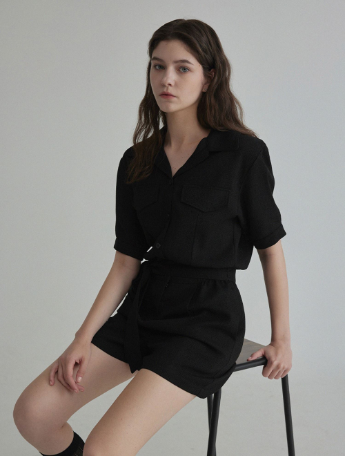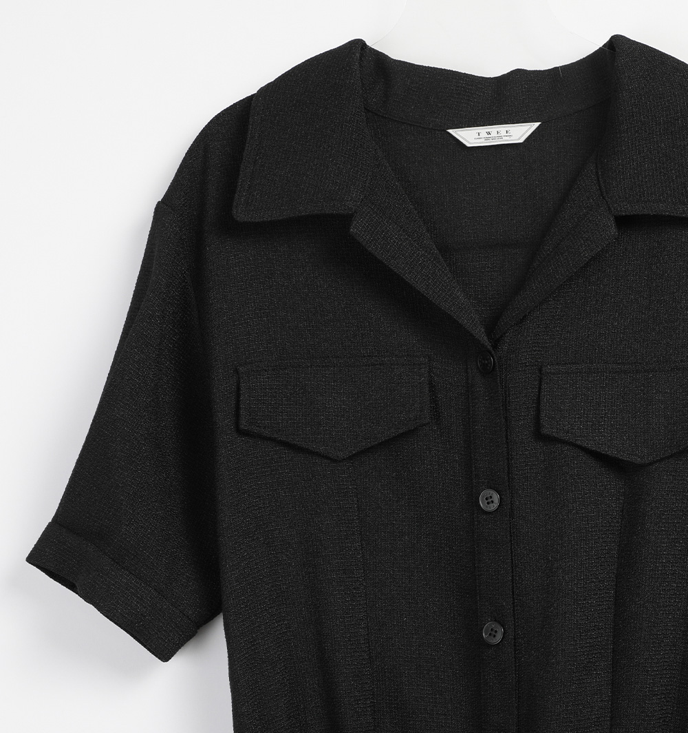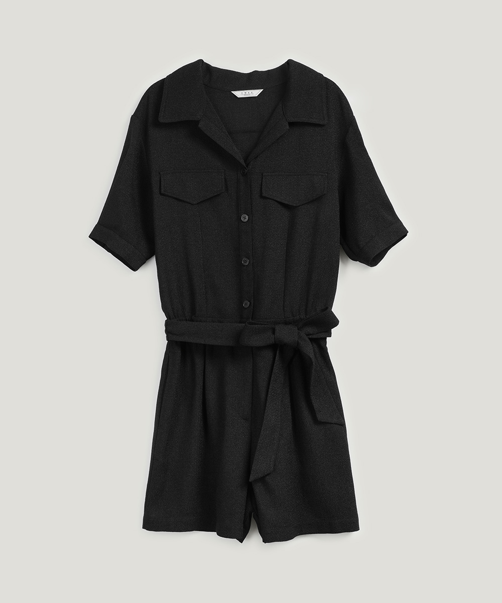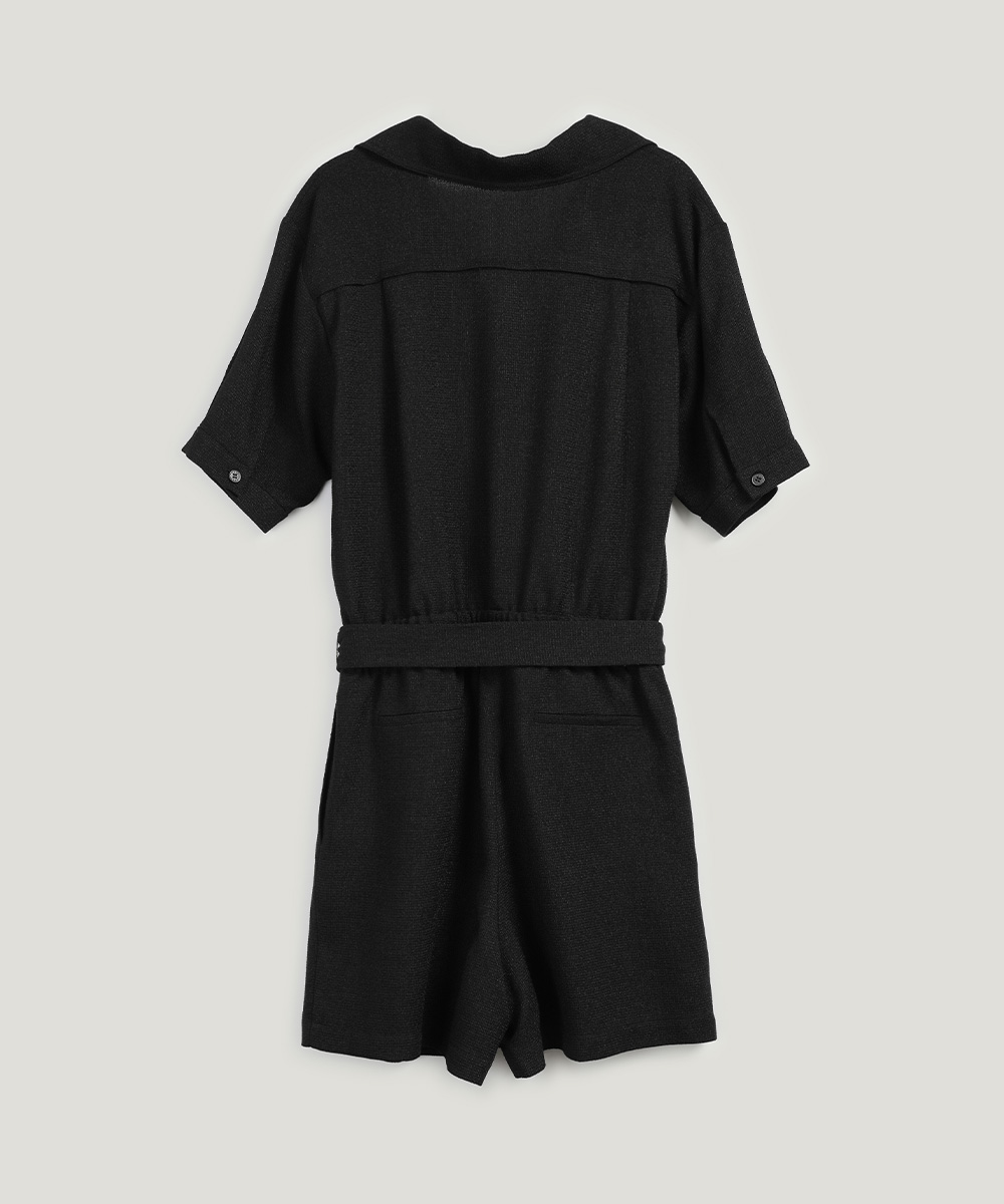 랑데 트위드 카라넥 반팔 점프슈트