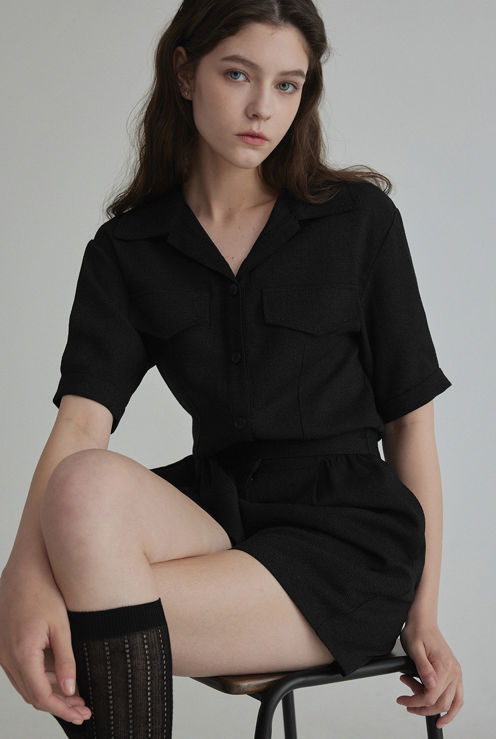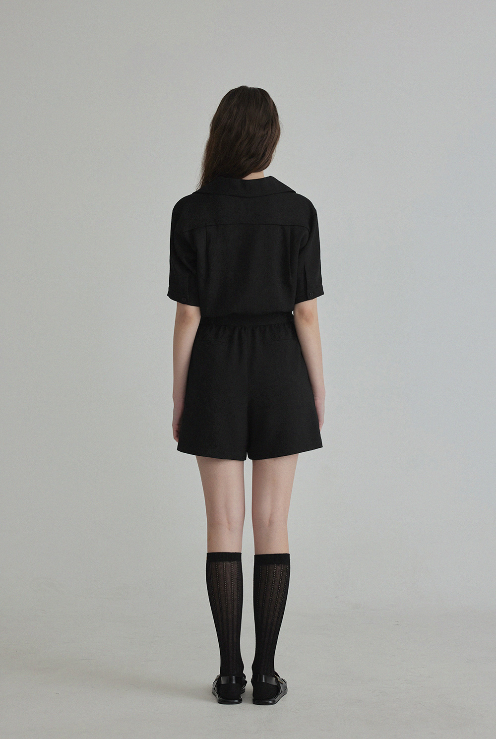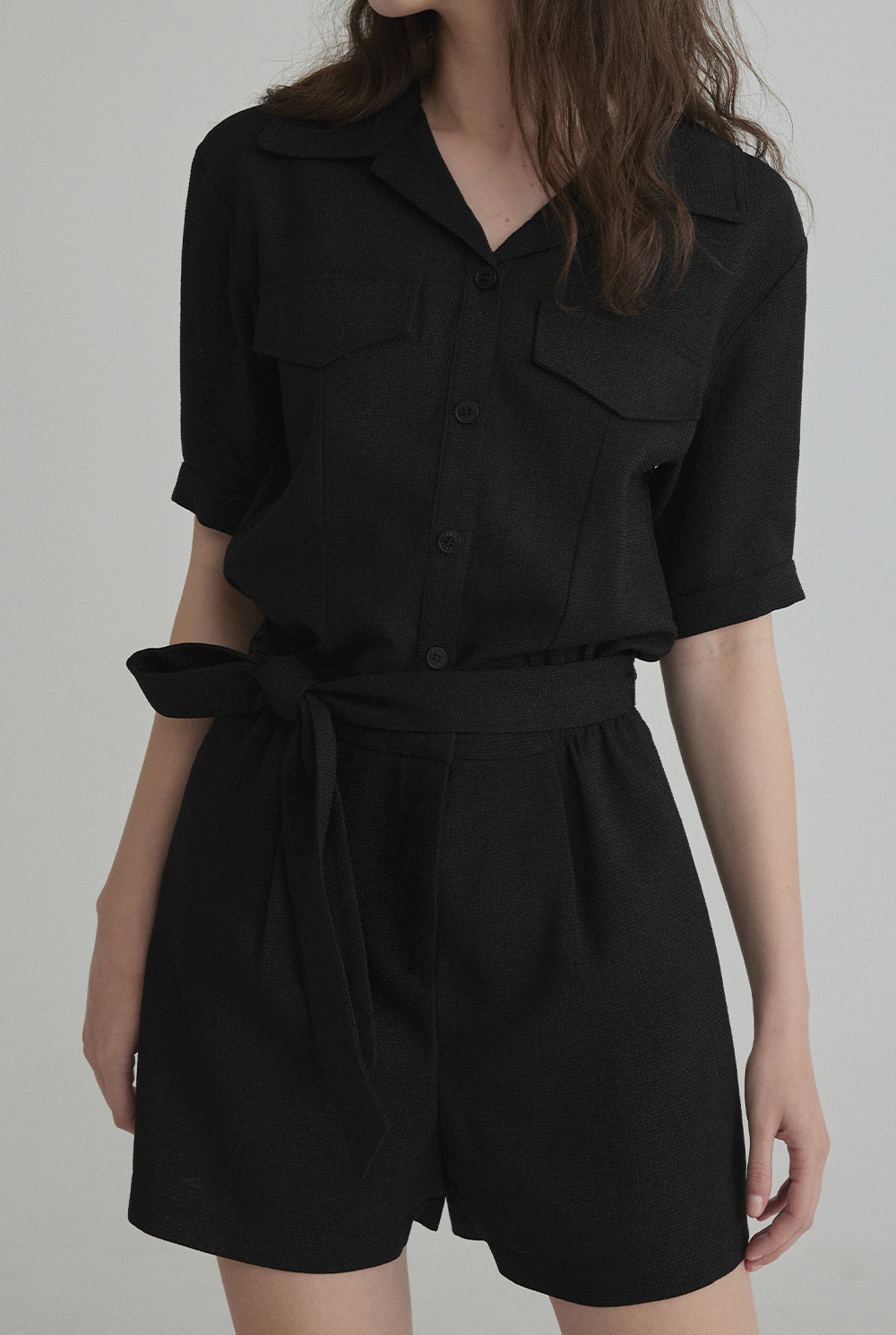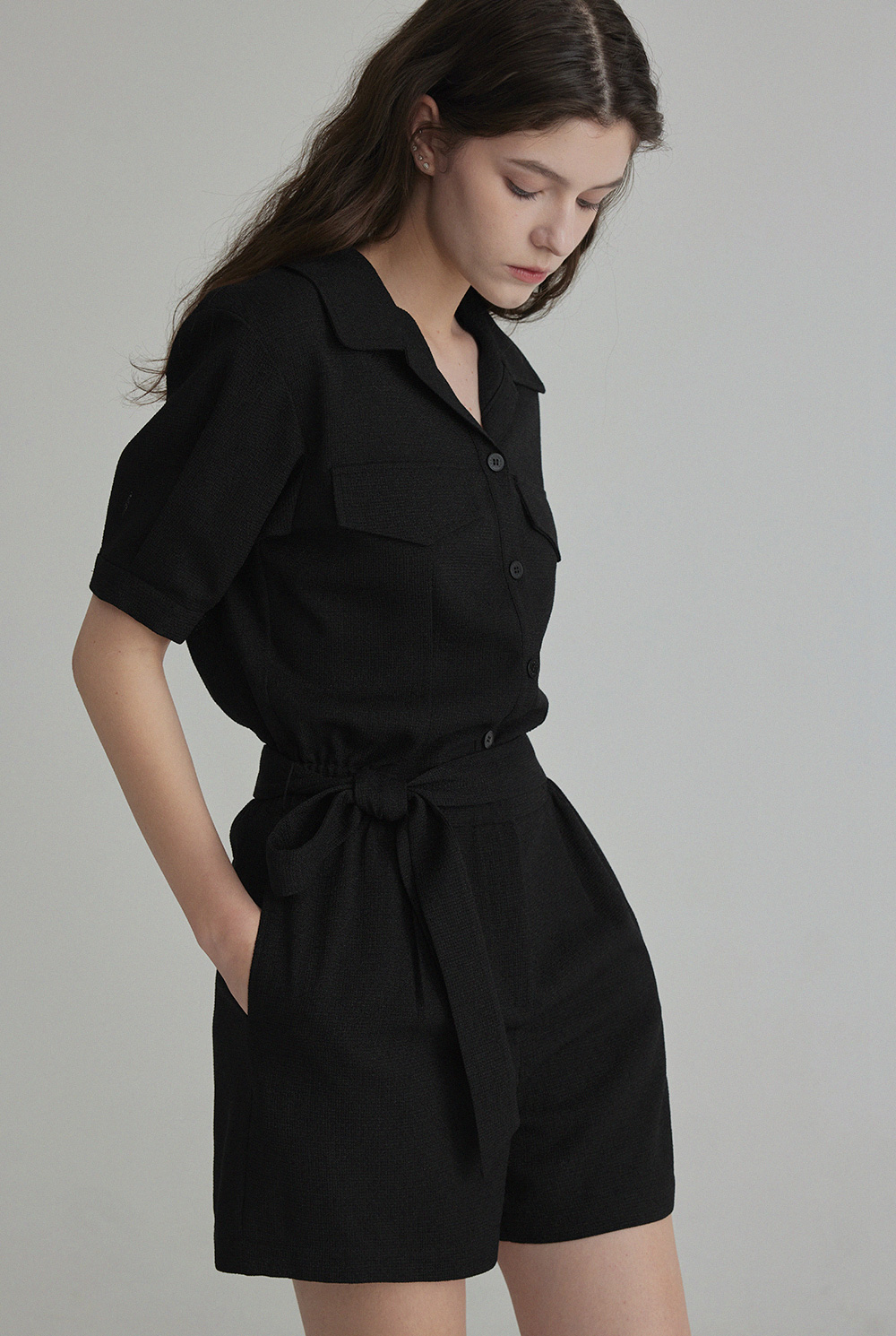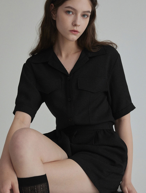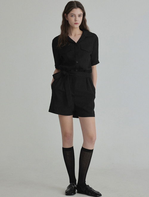 랑데 트위드 카라넥 반팔 점프슈트