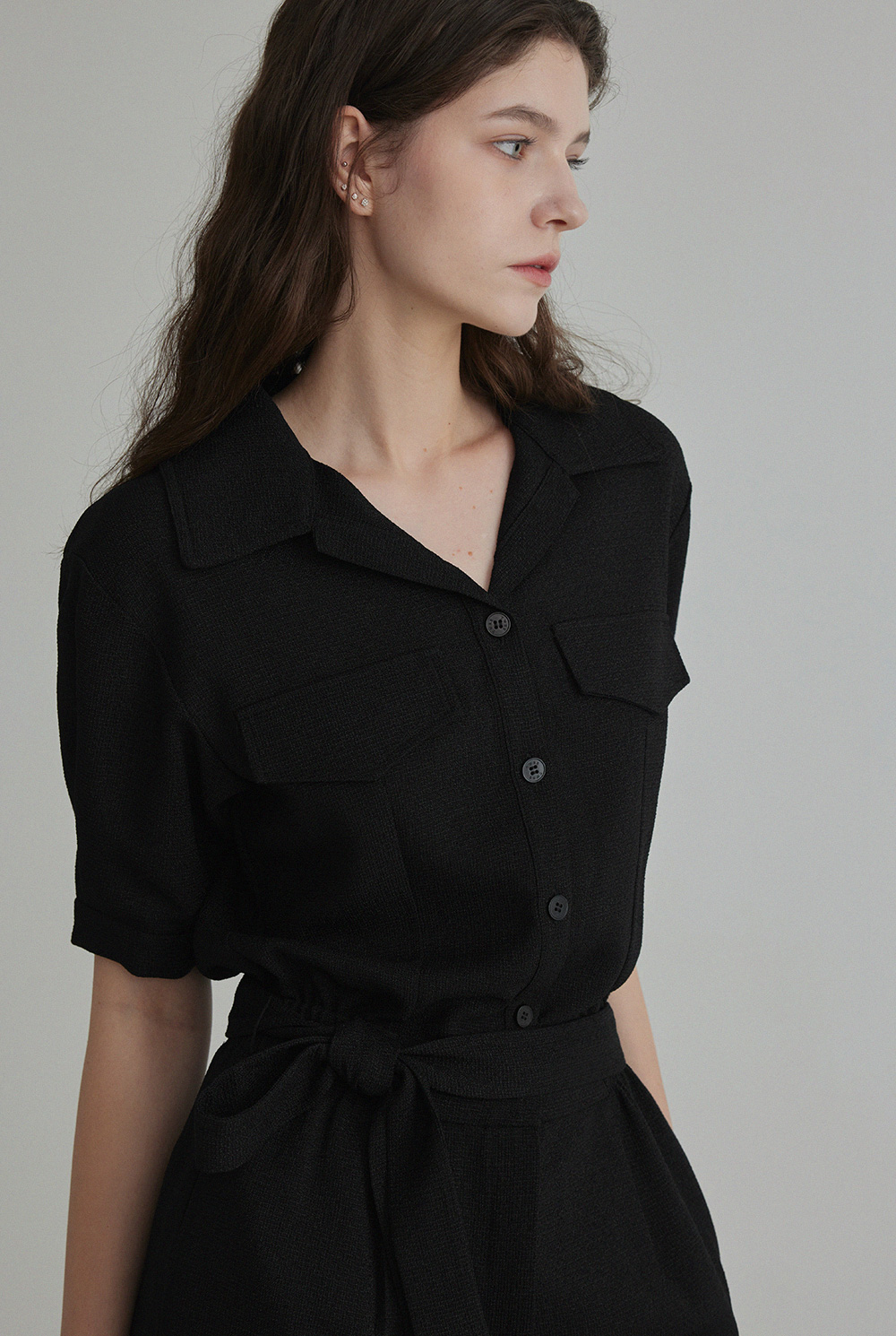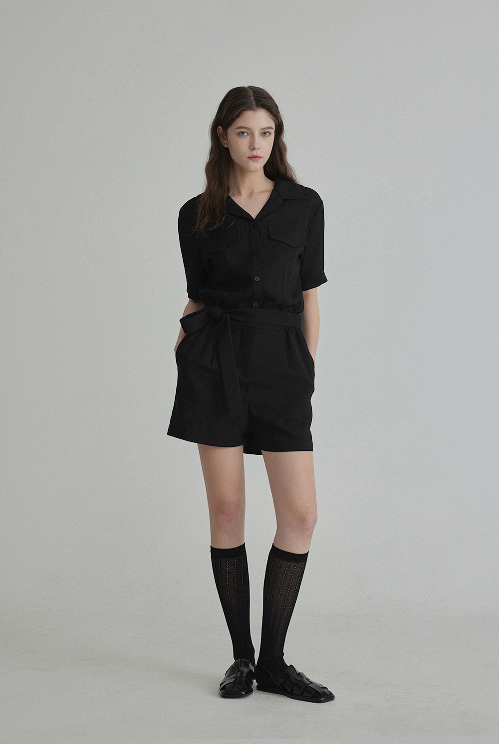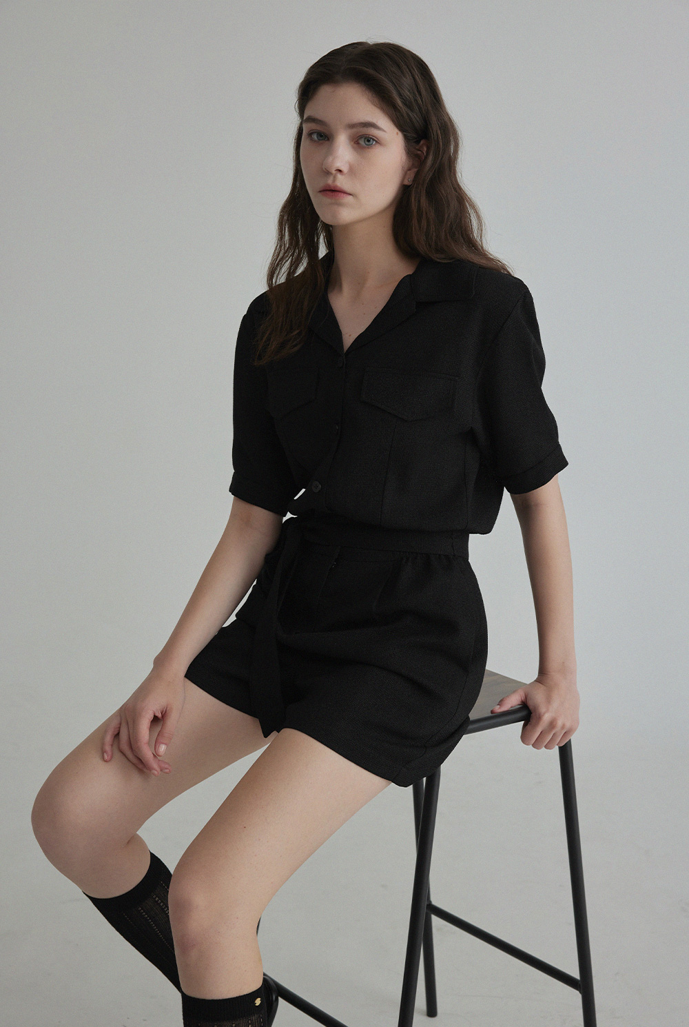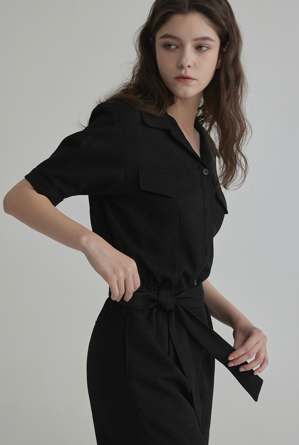 랑데 트위드 카라넥 반팔 점프슈트