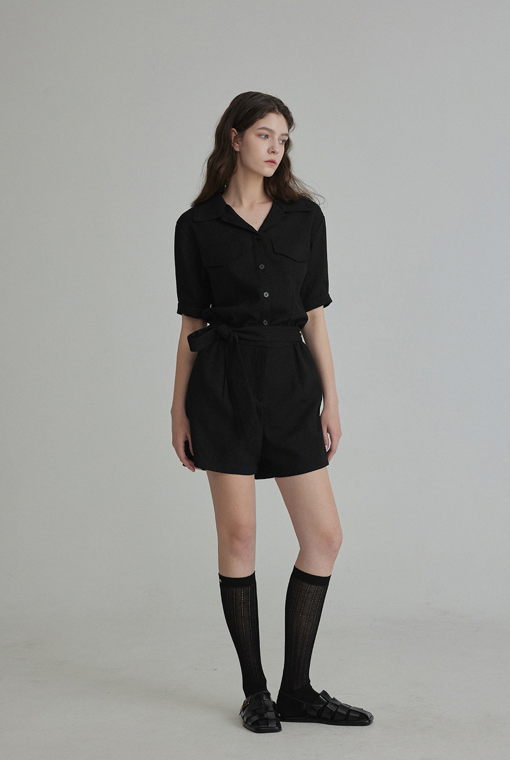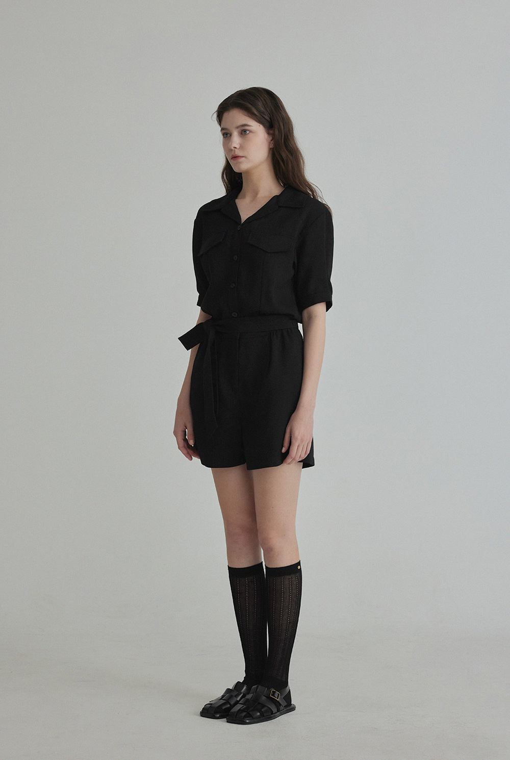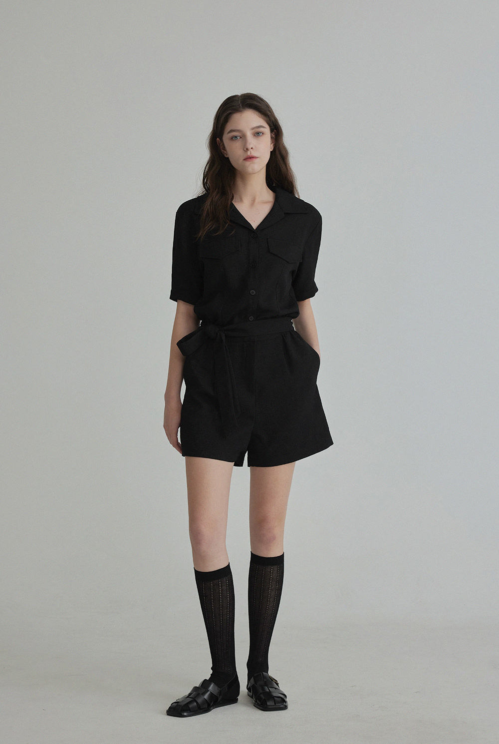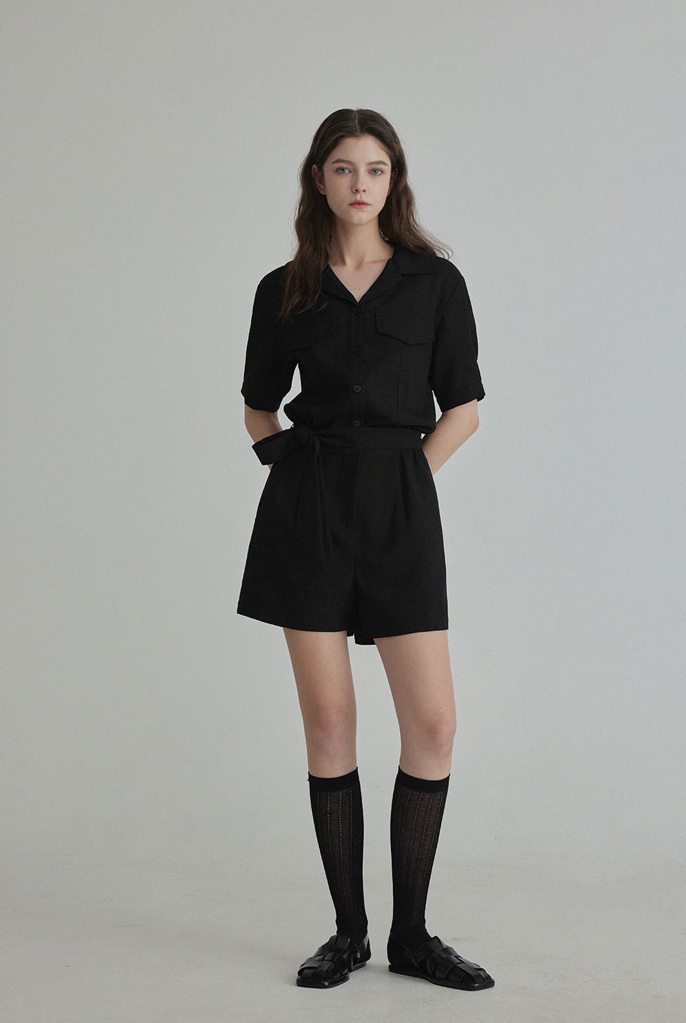 랑데 트위드 카라넥 반팔 점프슈트