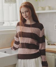 페이드 배색 스트라이프 긴팔 니트
