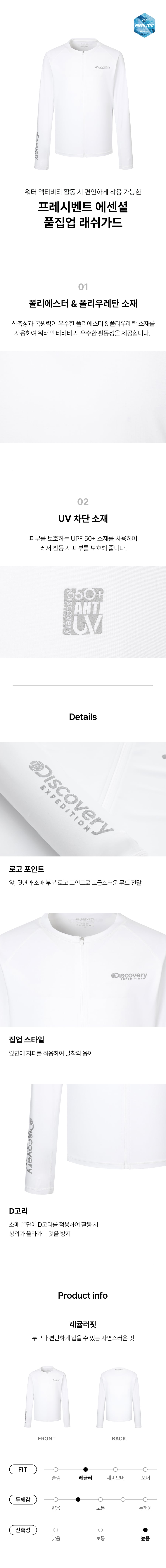 프레시벤트 남성 에센셜 풀집업 래쉬가드 (WHITE)