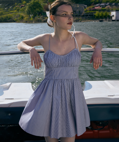스트라이프 플레어 미니 드레스