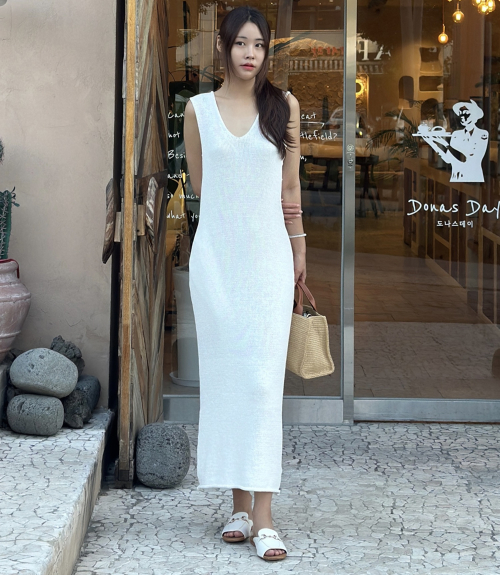 리브 니트 드레스