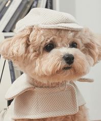 강아지 모자 해링본 헌팅캡 아이보리