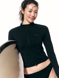 우먼 에센셜 크롭 집업 래쉬가드 블랙 (B6SWWCZ001BLK)