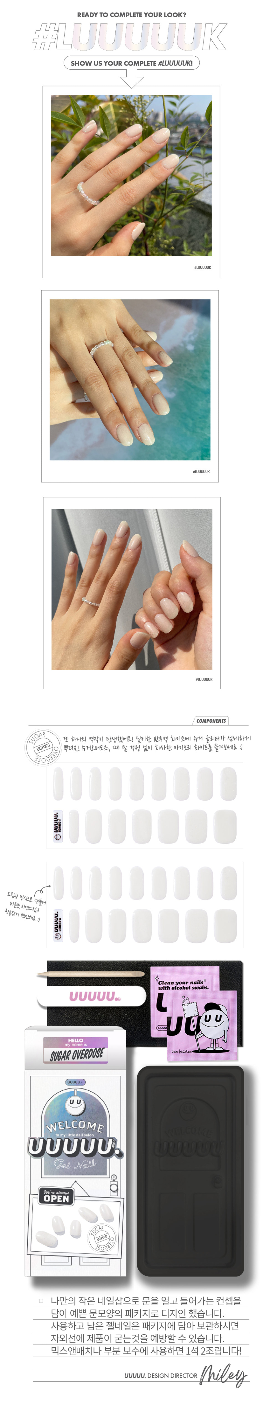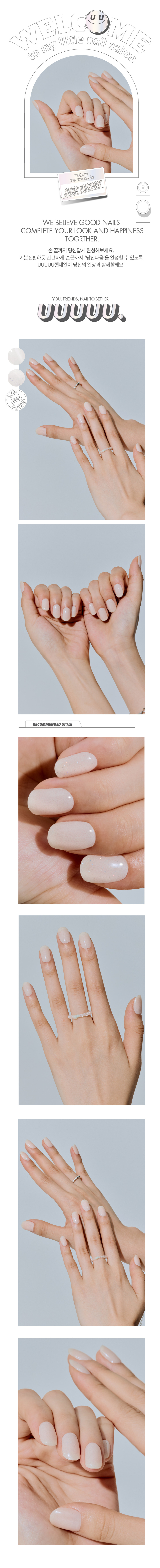 유유유유유(UUUUU.)는 'express U, for U, love U, with U UUUUU.'라는 슬로건 아래, 당신을 위한 쉽고 혁신적이며 감각적인 네일 제품을 선보이는 브랜드입니다.