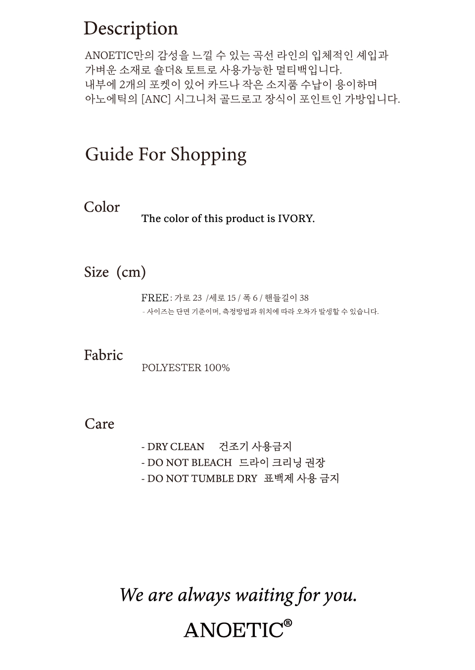 아노에틱(ANOETIC)은 컨템포러리하고 절제된 디자인을 추구하면서도 남들과 다른, 기존에 없는 디자인을 추구하는 브랜드입니다.