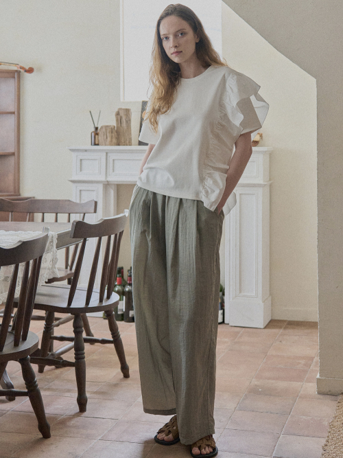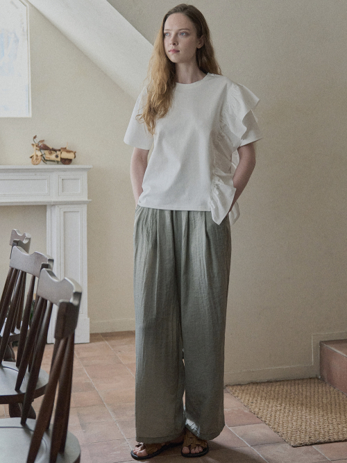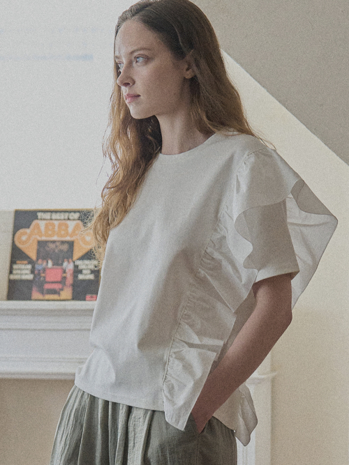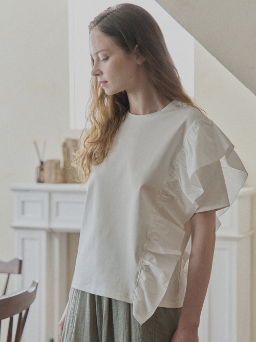 Ruffle Unbalance T-shirt - IVORY