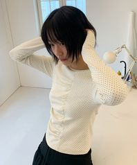 RUCHED SLIM FIT T SHIRT IVORY DOT