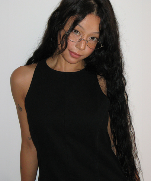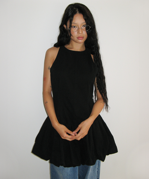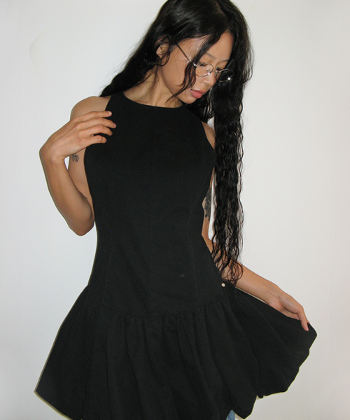 Frill Sleeveless Dress (Black)