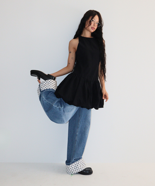 PUMPKIN SLEEVELESS DENIM DRESS BLACK