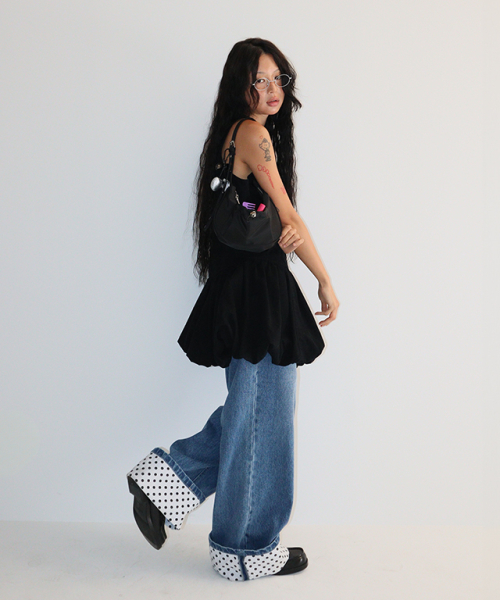 퓨어 보우 오프숄더 맨투맨 블랙