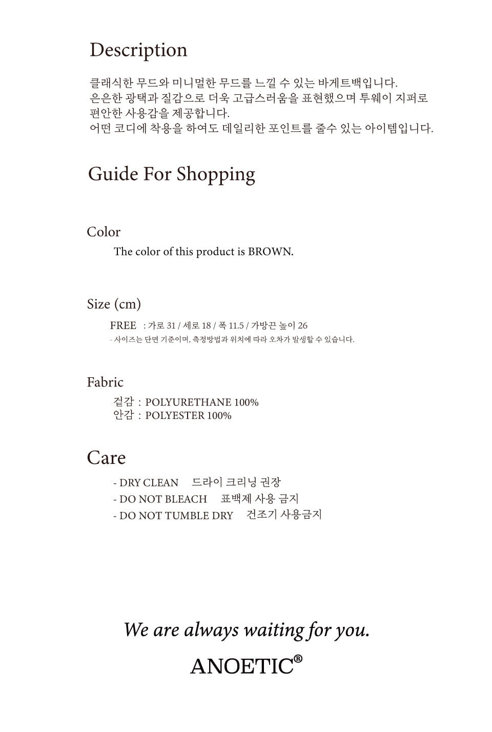 아노에틱(ANOETIC)은 컨템포러리하고 절제된 디자인을 추구하면서도 남들과 다른, 기존에 없는 디자인을 추구하는 브랜드입니다.