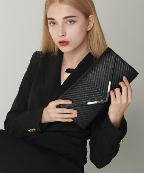 소가죽 V 퀼팅 체인 클러치백 H16H515 블랙