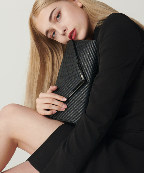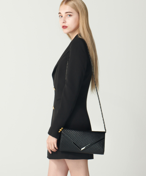 소가죽 V 퀼팅 체인 클러치백 H16H511 블랙