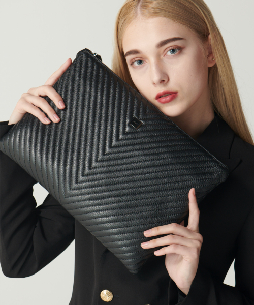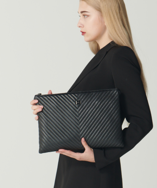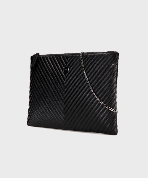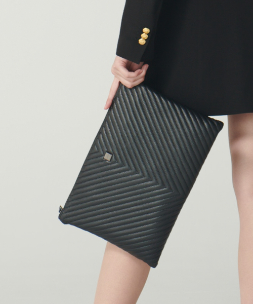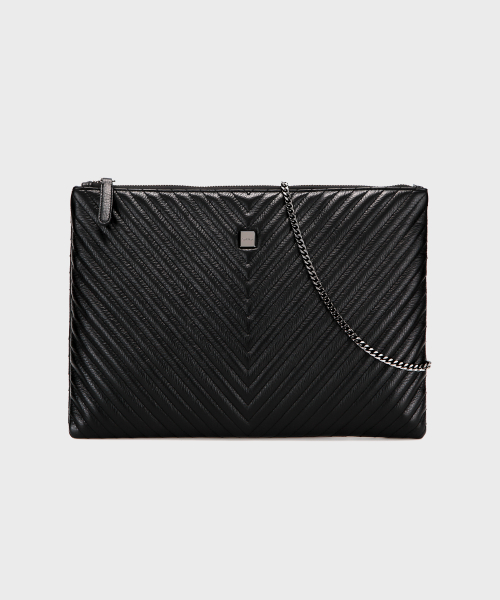 소가죽 V 퀼팅 체인 클러치백 H16H511 블랙