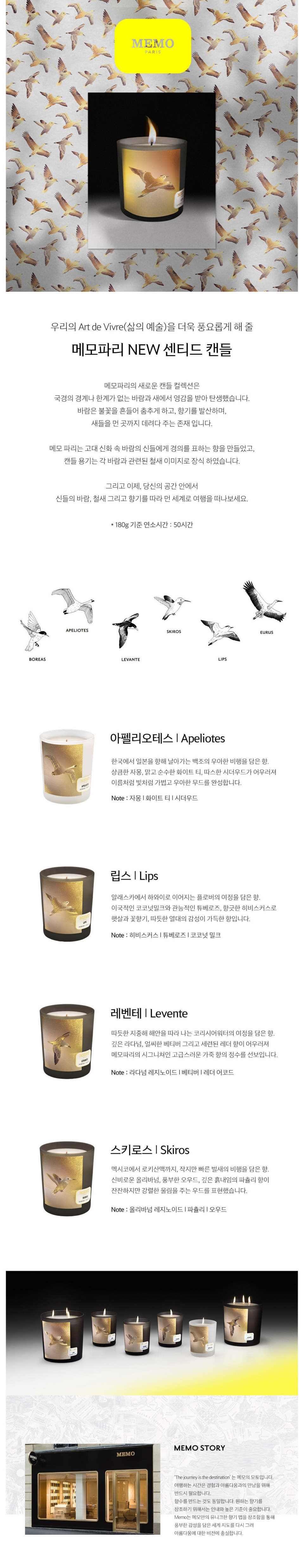 메모파리(MEMO PARIS)는 ‘기억(Memory)’에서 비롯되어 '향기로 이동 없이 여행을 떠날 수 있다'는 철학으로 탄생한 프렌치 프래그런스 하우스입니다. 후각적 기억이 깃든 메모파리만의 섬세하면서도 우아한 향기로 꿈꿔왔던 행선지로 당신만의 여행을 떠나보세요.