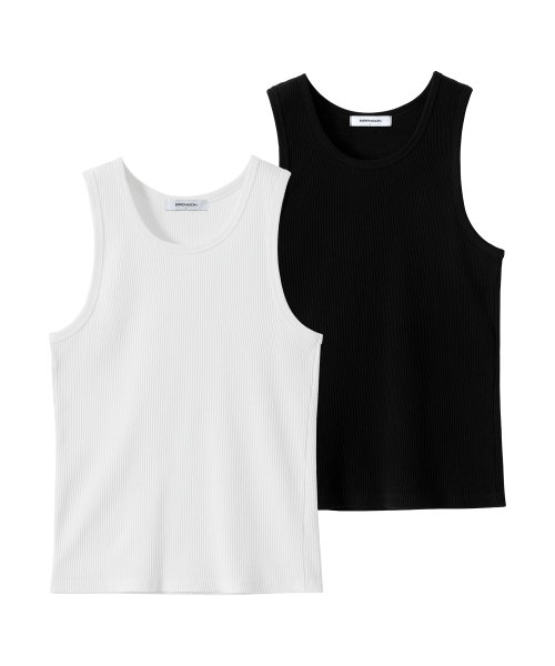 [2PACK] 리브드 슬림핏 슬리브리스 ( 2Color )