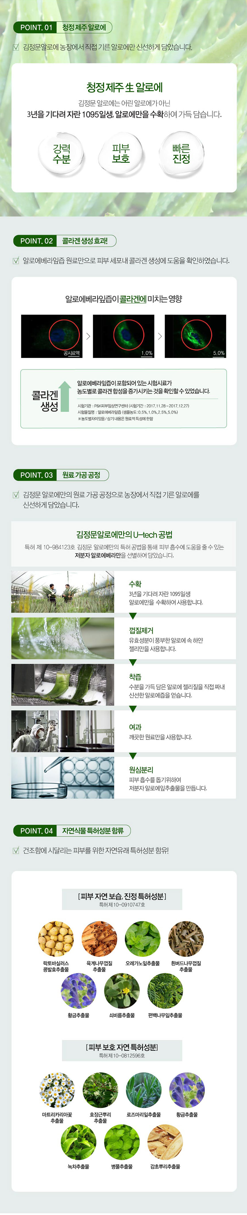 김정문알로에(KIMJEONGMOONALOE)는 청정 제주에서 1,000일 동안 정성으로 길러 직접 재배한 生알로에의 유효 성분을 담아 낸, 치유의 힘을 선보이는 브랜드입니다.