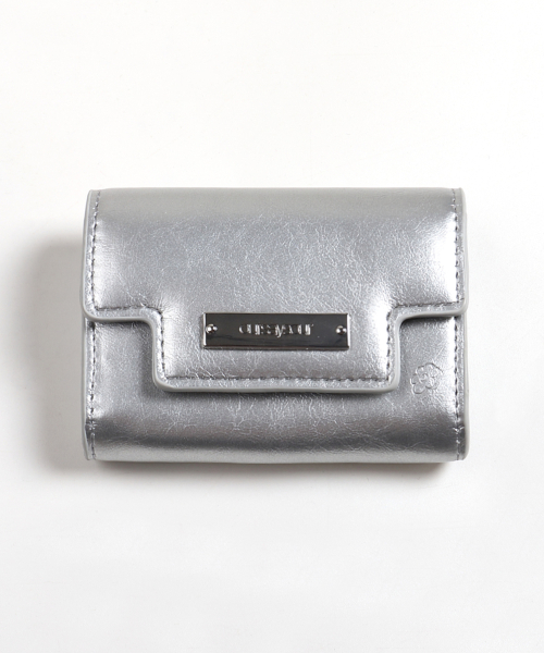 FLOWER LOGO SLIM CARD WALLET IN SILVER